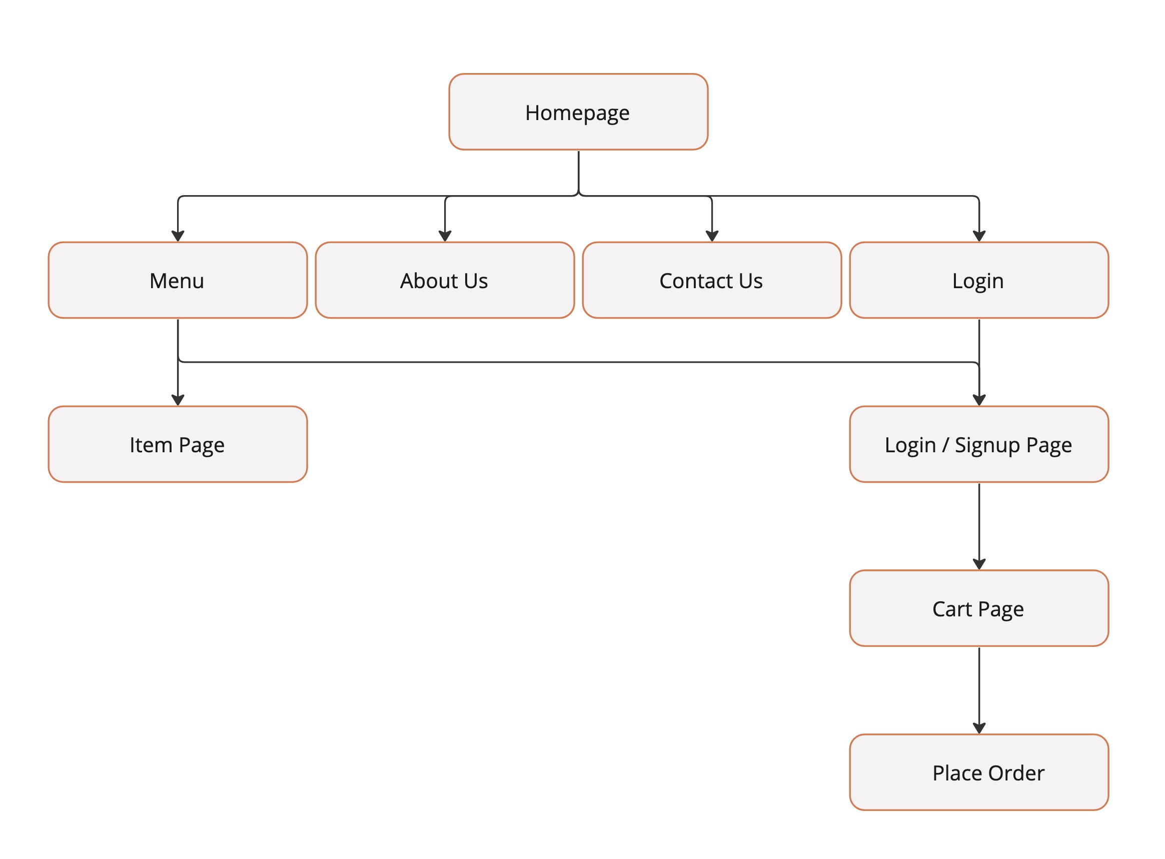 I created s simple hierarchical structure that allows the user to quickly view the menu and place an order: