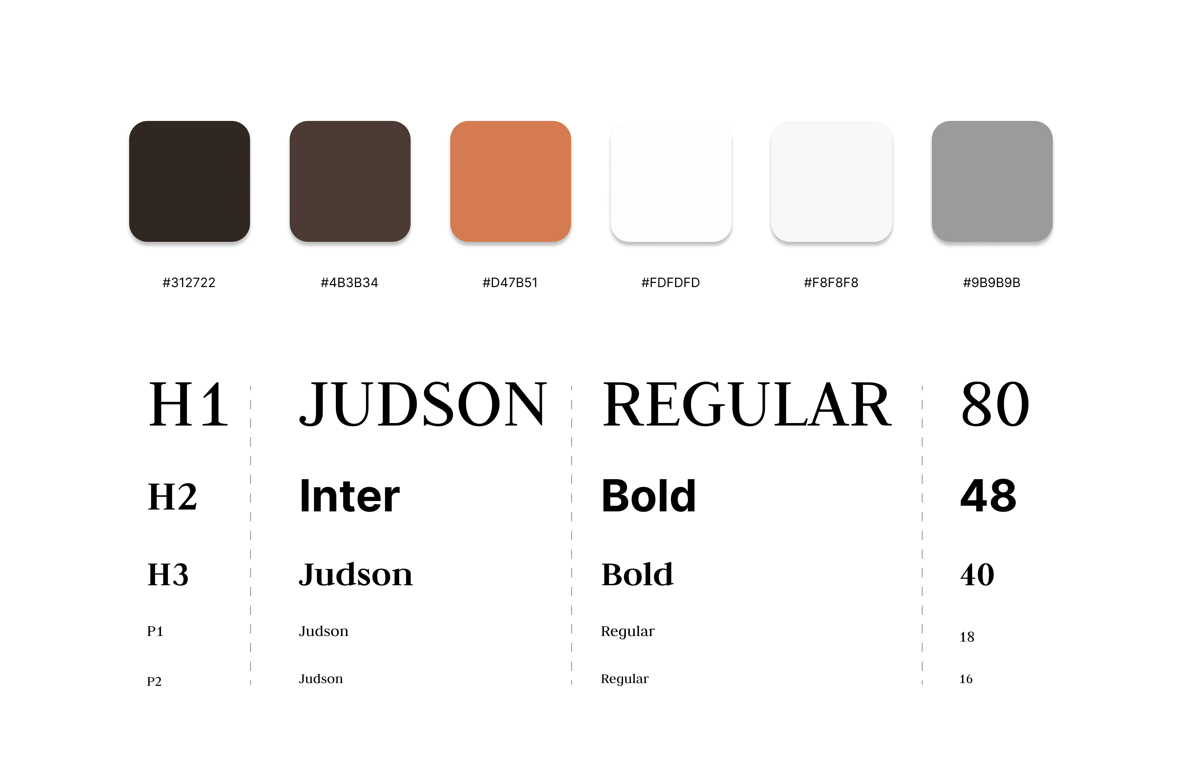 The style guide was created using an existing logo, and the colour palette is designed with earthy dark colours, and a warm orange tone.